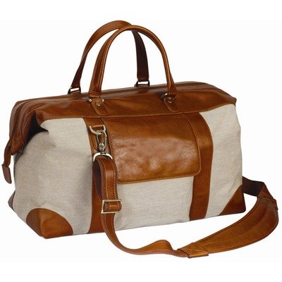 4726 Features: -Available in Tan.-4 elastic pockets.-Luggage tag.-Detachable shoulder strap. Construction: -Constructed from twill and leather. Dimensions: -Overall Dimensions: 19.5'' H x 12'' W x 8.5'' D.